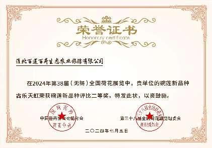 11 07月2024 了解詳情 百蓮百荷參加全國(guó)荷展獲全國(guó)荷花睡蓮新品種評(píng)比二等獎(jiǎng)! 第38屆全國(guó)荷花展覽于2024年7月4日在江蘇無(wú)錫市舉行,來(lái)自全國(guó)各地的荷花愛(ài)好者、園藝師以及企業(yè)代表齊聚一堂,共同見(jiàn)證了這場(chǎng)荷花界的盛世。我公司精心培育的荷花新品種“古樂(lè)天虹”與睡蓮新品種“拇指嬌娘”在本次競(jìng)賽中脫穎而出,榮獲了寶貴的二等獎(jiǎng)。